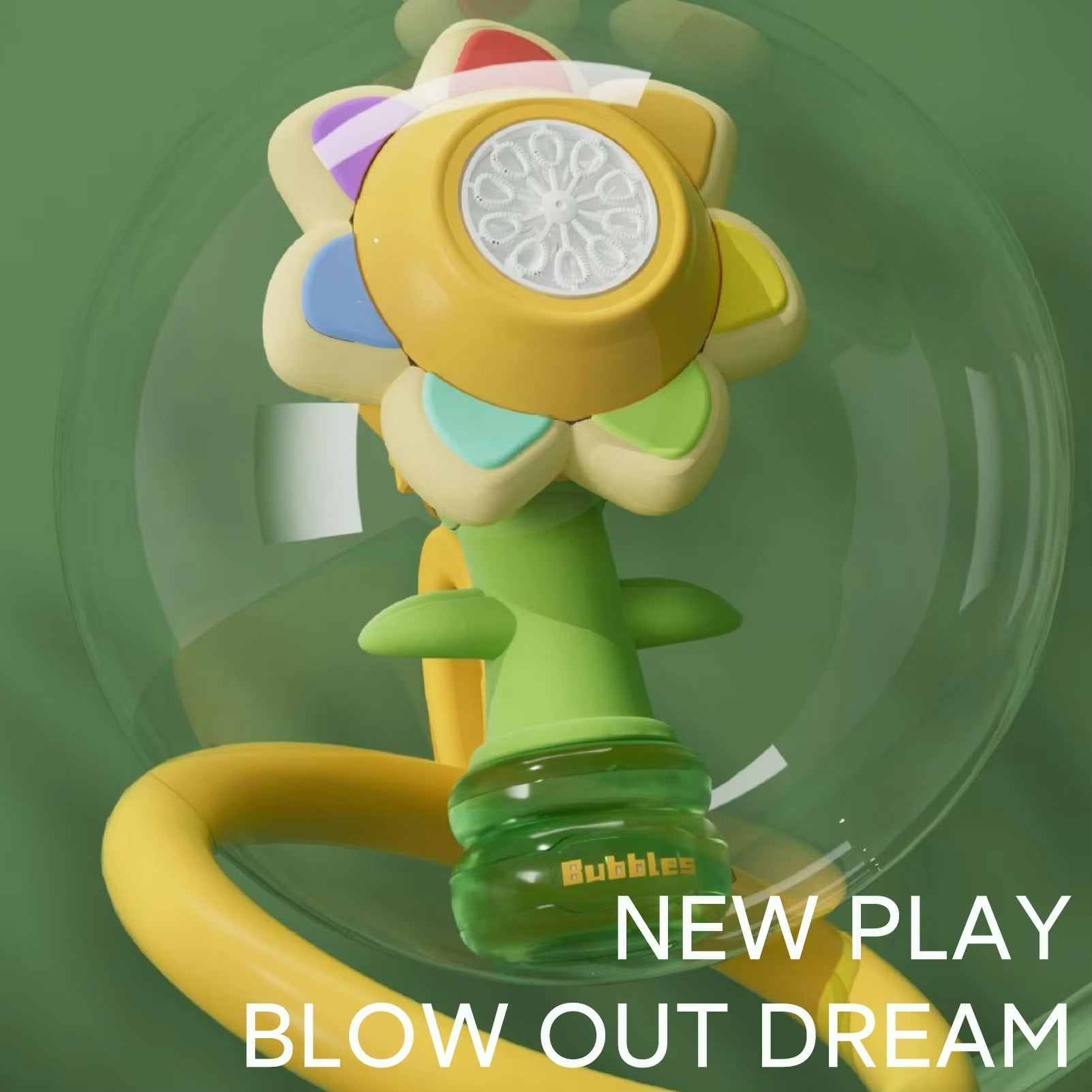 Ta zabawka w kształcie radosnego kwiatka wypuszcza bańki, które unoszą się w powietrzu, mienią i wywołują chichot. To letnia magia w ruchu.