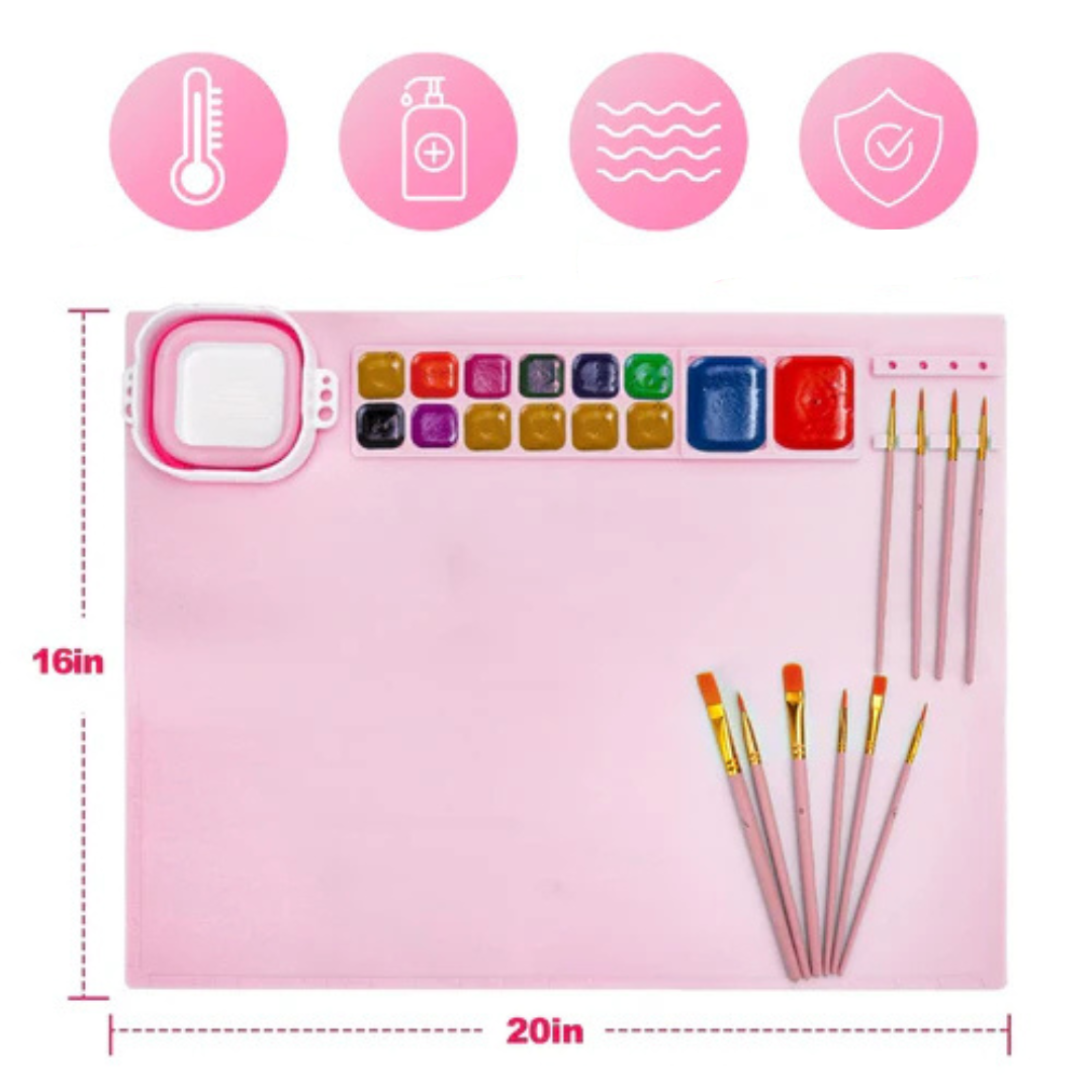 Wyobraź sobie świat, w którym farba, markery i brokat nie są już koszmarem do czyszczenia. DoodleDeck to wysokiej jakości silikonowa powierzchnia dopuszczona do kontaktu z żywnością, z wodoodpornymi krawędziami, które zapobiegają rozlaniu farby na meble. Niezależnie od tego, czy malujesz akwarelami, tworzysz rękodzieło, czy po prostu bazgrzesz, mata zapewnia wydzieloną przestrzeń do artystycznej ekspresji, a wbudowany kubek i uchwyt na farbę zapewniają dodatkową wygodę.