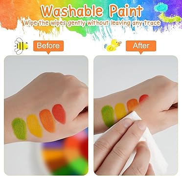 Zmywalne kolory sprawiają, że ta kolorowanka jest idealna dla dzieci i rodziców. Po pomalowaniu wszystko można łatwo wyczyścić wilgotną ściereczką lub chusteczkami nawilżanymi dla niemowląt, utrzymując je w czystości. Dzięki temu kolorowanka jest nie tylko zabawna, ale także praktyczna i łatwa w użyciu.