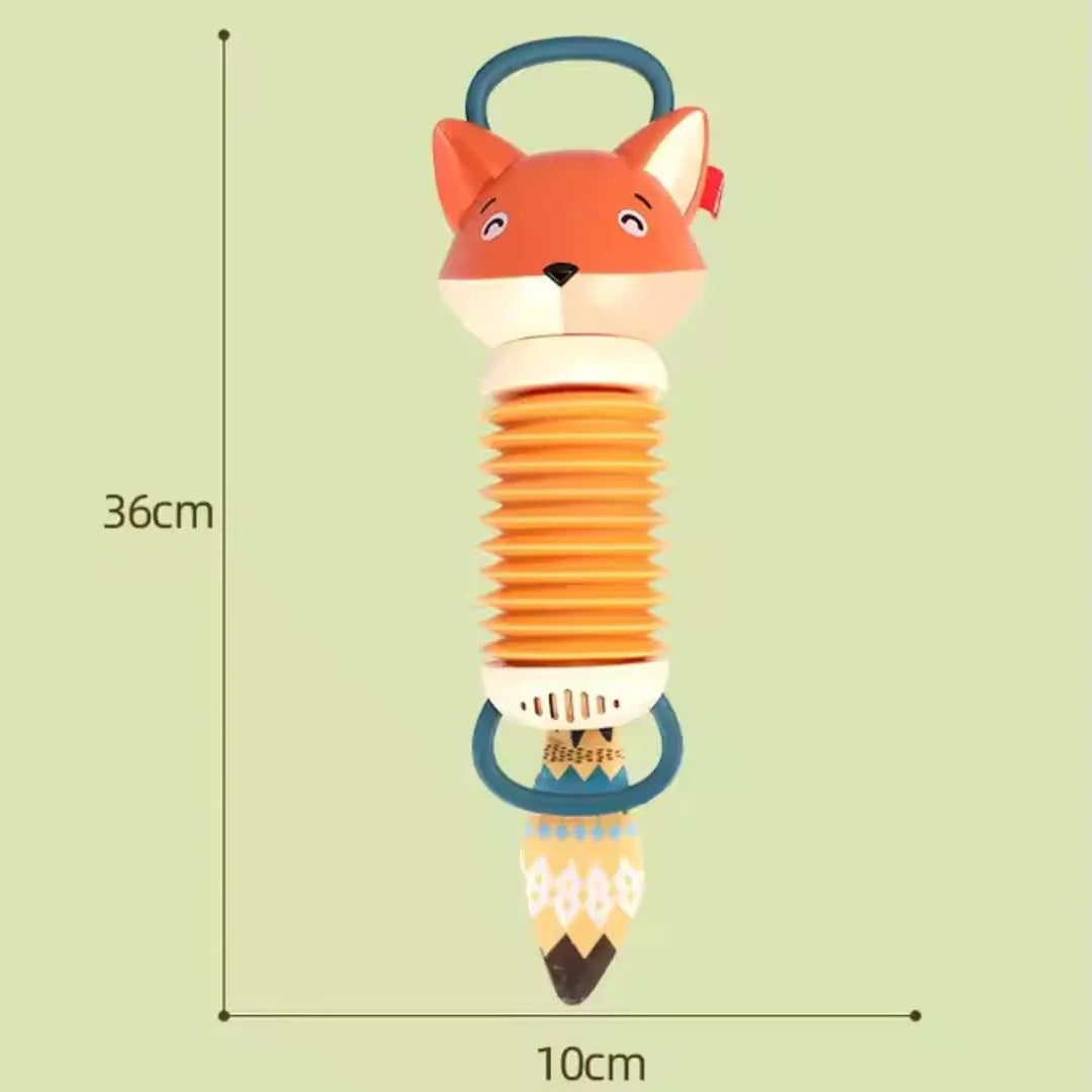 MelodyFox™ to przyjazna dzieciom zabawka akordeonowa, która wprowadza maluchy w świat dźwięków, ruchu i rytmu poprzez zabawę z możliwością ściskania. Dzięki miękkiemu miechowi i solidnym drewnianym uchwytom, ta zabawka w kształcie liska jest łatwa do chwytania i odkrywania przez małe rączki. Niemowlęta uwielbiają zabawę związaną z przyczynami i skutkami ściskania i słyszenia zabawnych dźwięków, a rodzice doceniają stymulację sensoryczną i wsparcie rozwoju – wszystko dzięki trwałym, nieelektronicznym zabawkom wykonanym z bezpiecznych materiałów.