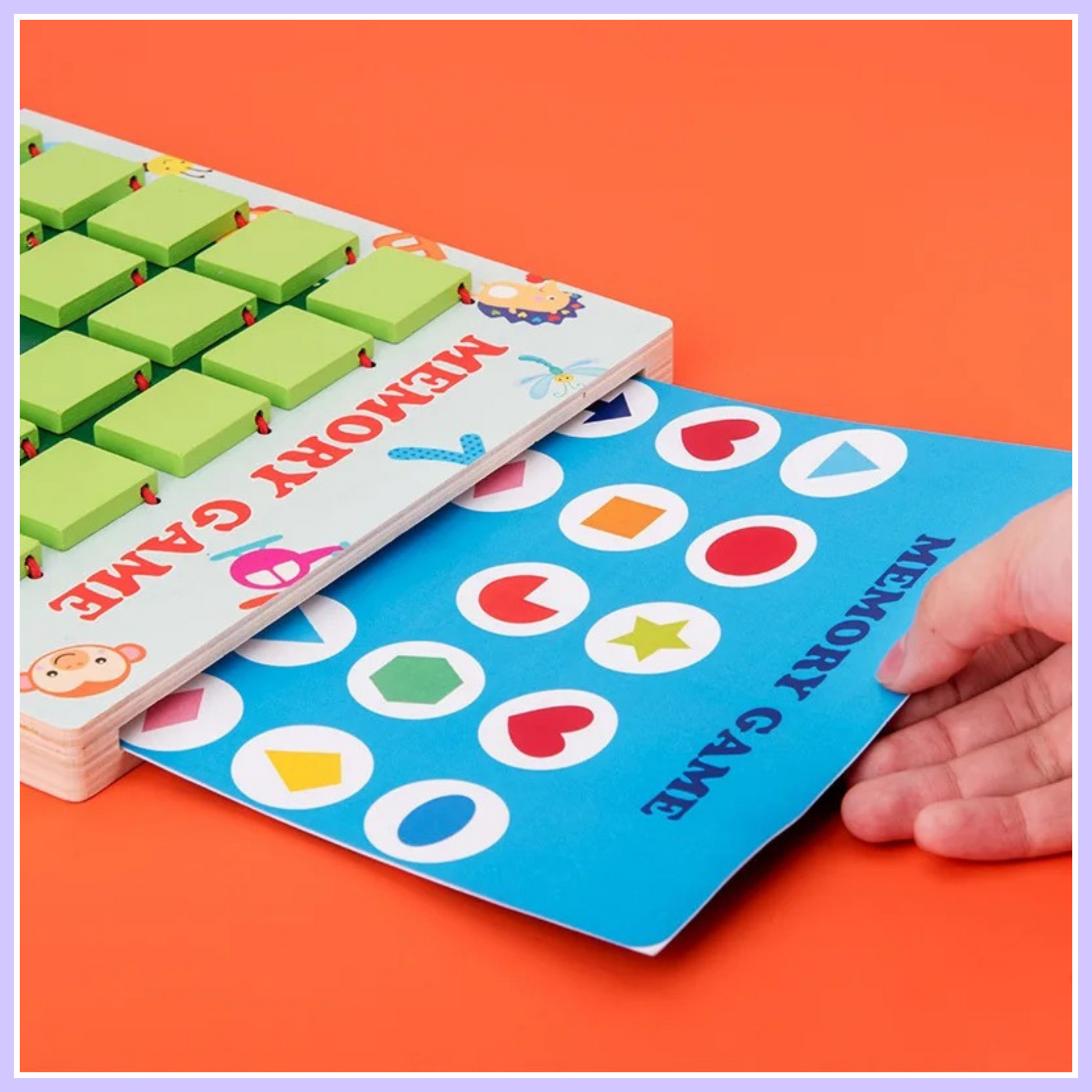 Ta drewniana gra pamięciowa zachęca dzieci do łączenia elementów w pary, rozpoznawania kolorów i zapamiętywania wzorów. Zabawna i edukacyjna gra do domu lub szkoły.
