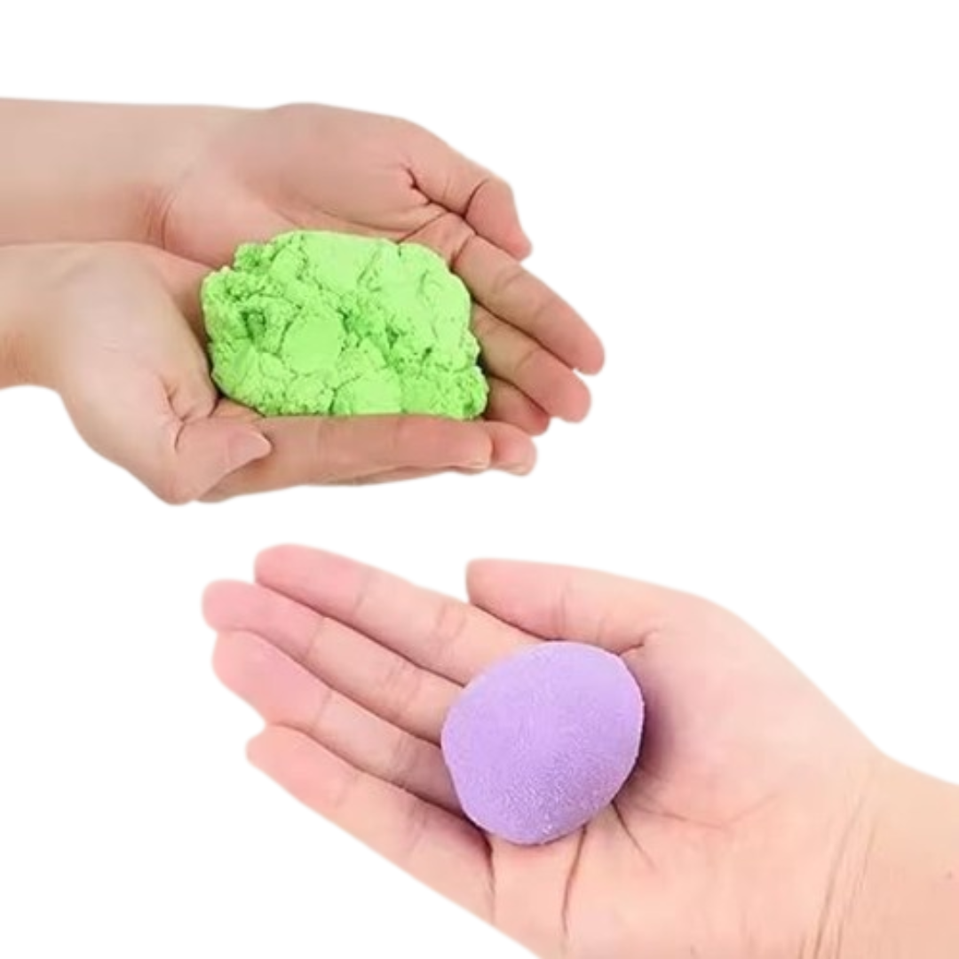 Zabawa bez bałaganu: Piasek kinetyczny przykleja się do siebie, a nie do rąk, co ułatwia sprzątanie.
