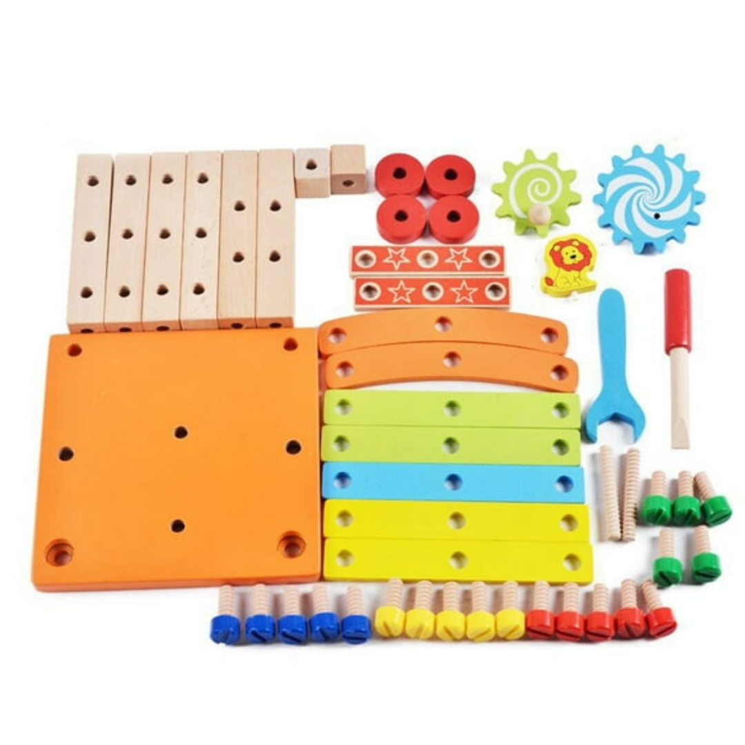 Ta zabawka Montessori zawiera zestaw prawdziwych narzędzi, które pomogą dzieciom budować, naprawiać i rozbierać swoje dzieła, rozwijając jednocześnie kreatywność, koordynację wzrokowo-ruchową, motorykę małą i logiczne myślenie.