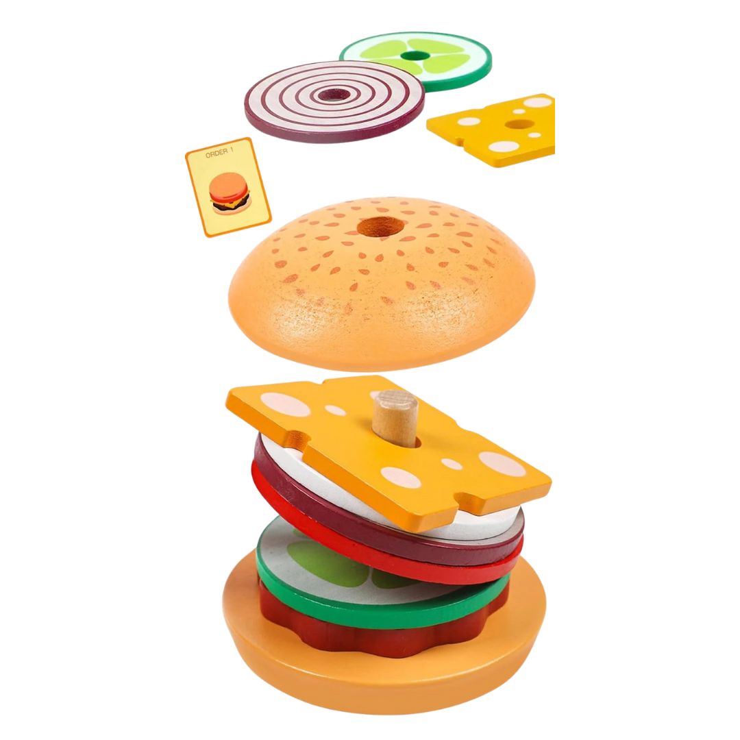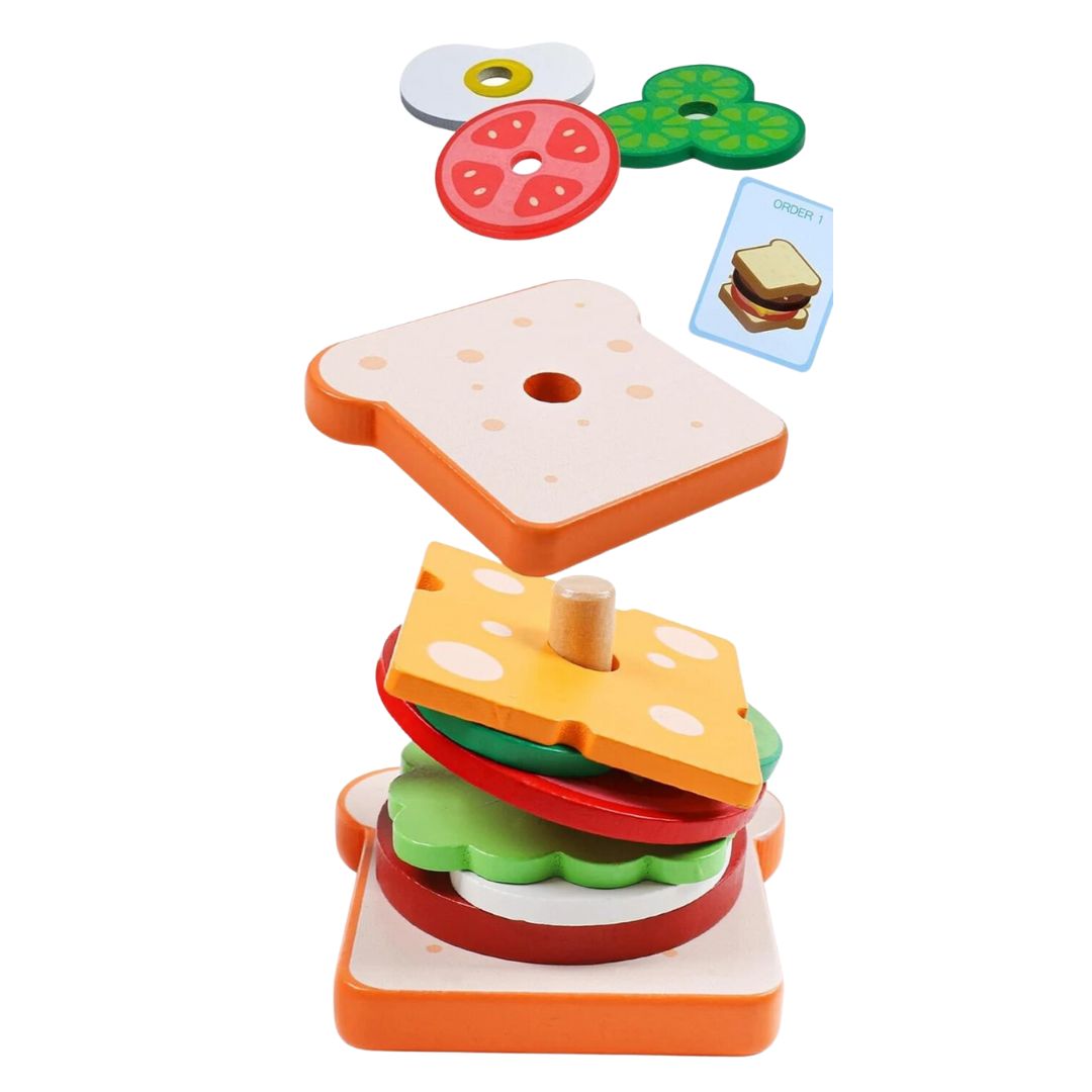 Ta zabawna, drewniana zabawka pozwala dzieciom kreatywnie układać chleb, ser, warzywa i inne rzeczy. Idealna do kreatywnej zabawy i rozwoju małej motoryki.
