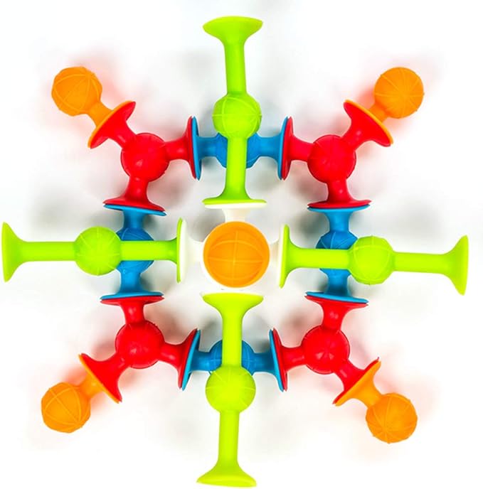 Dzieci mogą przyklejać, odklejać i łączyć kolorowe przyssawki, tworząc zabawne kształty. Idealna do zabawy sensorycznej i rozwoju małej motoryki.